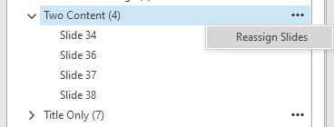 That will bring up the Reassign Slides dialog where you can quickly change the layout used for multiple slides.