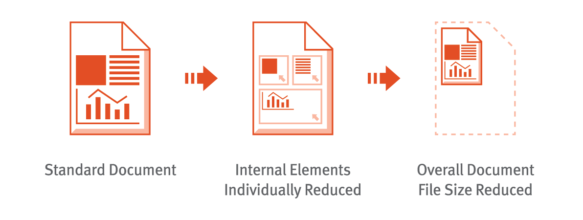 NXPowerLite tackles individual elements inside a document, assessing how to reduce each component in turn. By examining each component in isolation it will choose the most effective method of reduction rather than applying general settings across the whole file. This approach creates much smaller files that remain in the same format, so no readers or decompression tools are required.